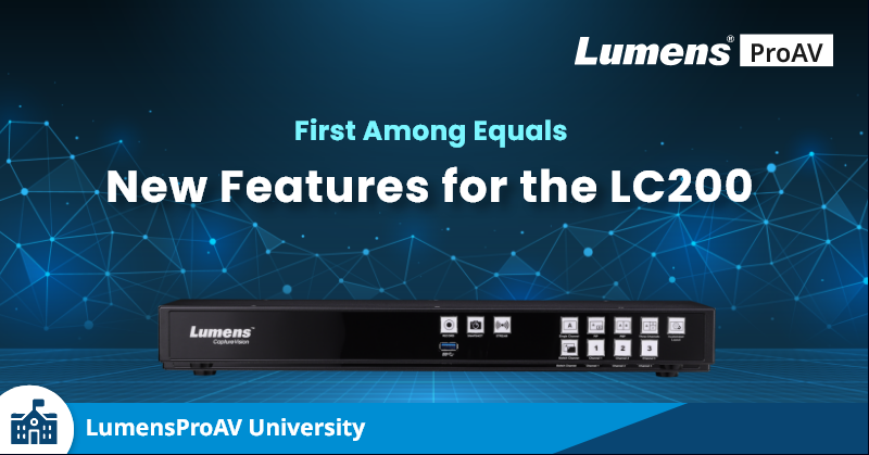 Lumens LC200 是 CaptureVision 系列中的第一款产品。 凭借4个视频源切换、图像来源重组、视频捕获和流式传输,以及与学习管理系统的快速整合,它已迅速成为大学、公共部门组织和企业公司的一大热门产品。