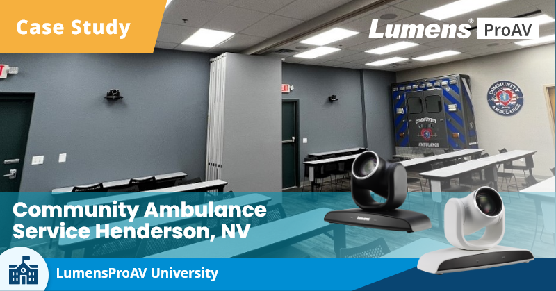 社区救护车是位于内华达州南部的救护车服务。 为了满足要求,T.V.S. Pro 安装了 Newline 86 英寸屏幕和 Epson 交互式投影仪、Shure MXA710 麦克风和 Lumens PTZ摄像机。