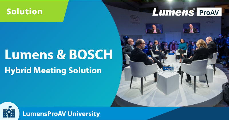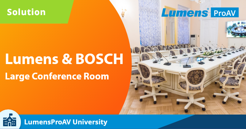 大型会议室需要具有高品质音频的专业会议系统。 Bosch DICENTIS 产品与 Lumens 相机完美结合,提供各应用场景的解决方案。