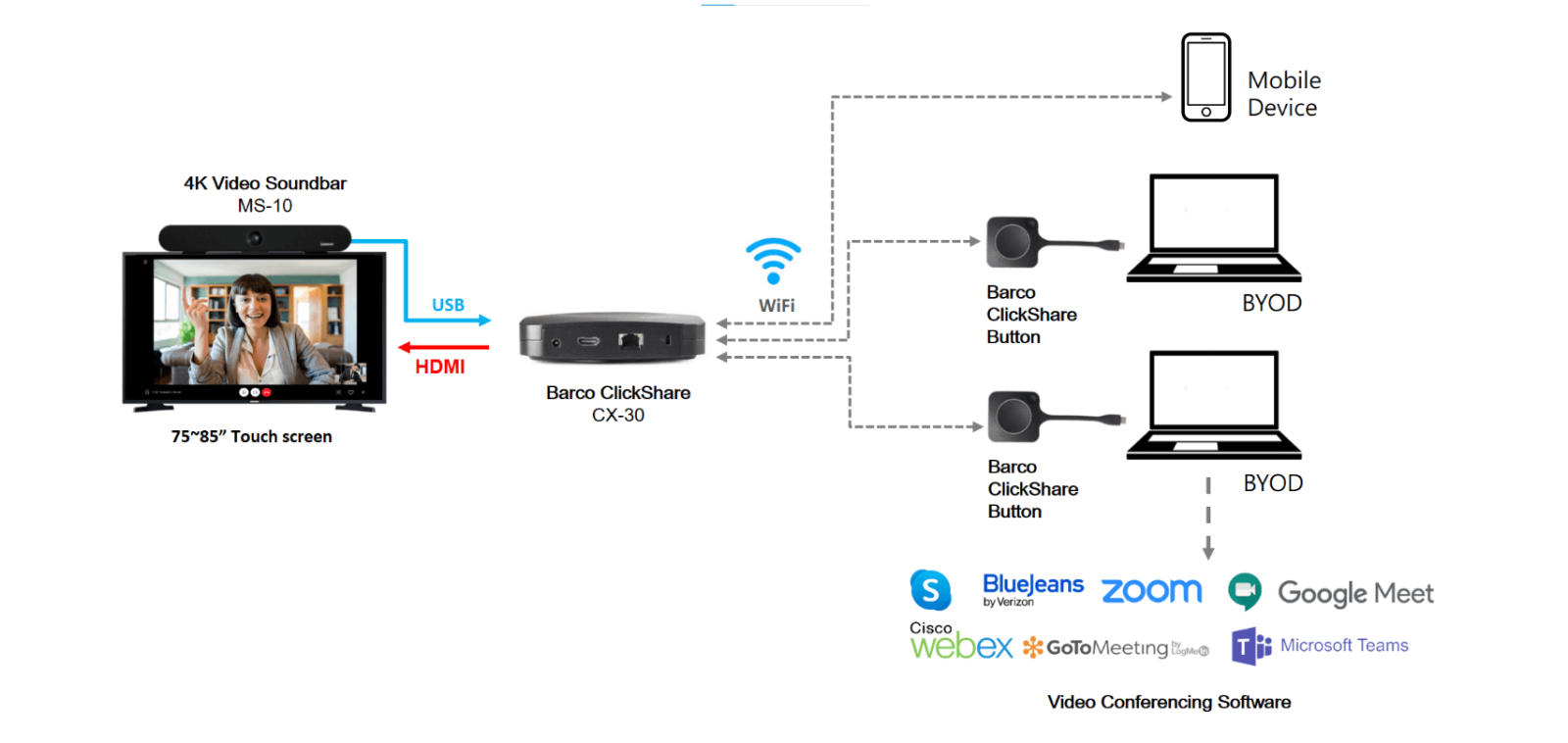 Barco ClickShare无线会议,您只需按一下即可开始视频会议。