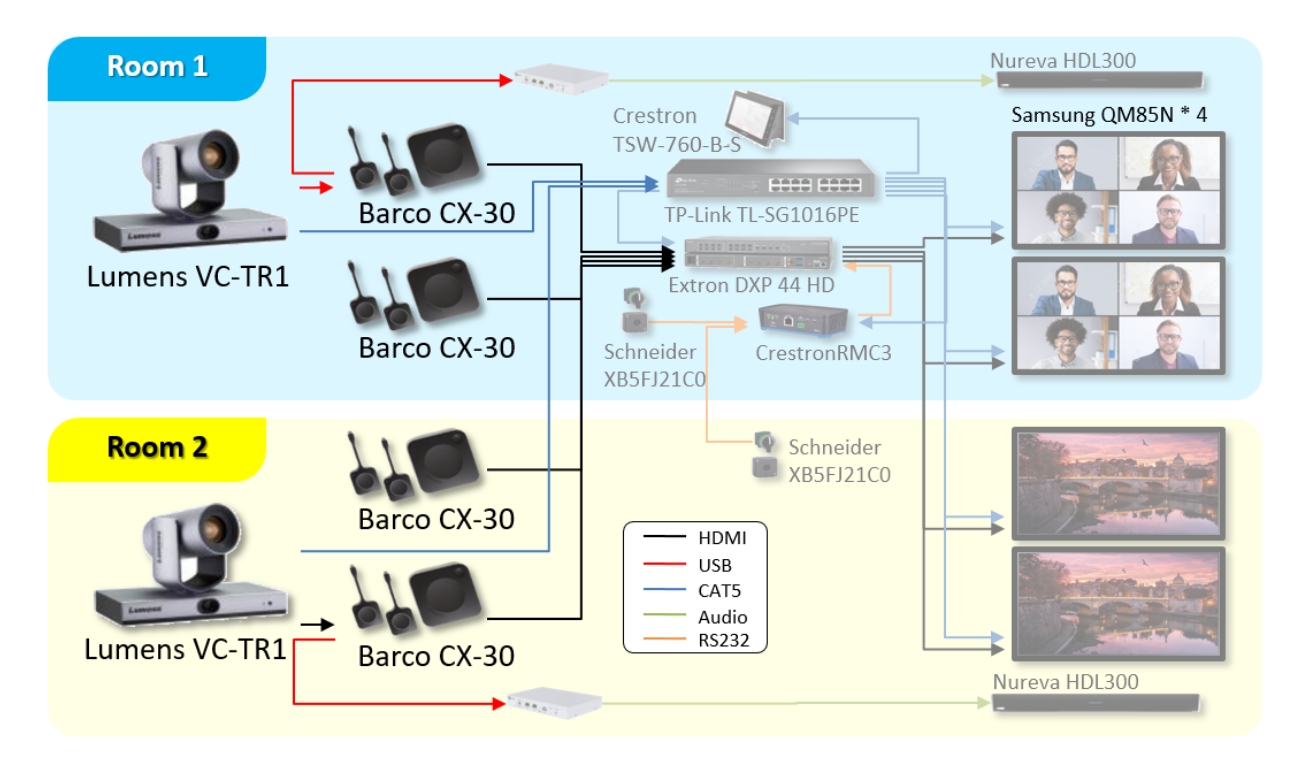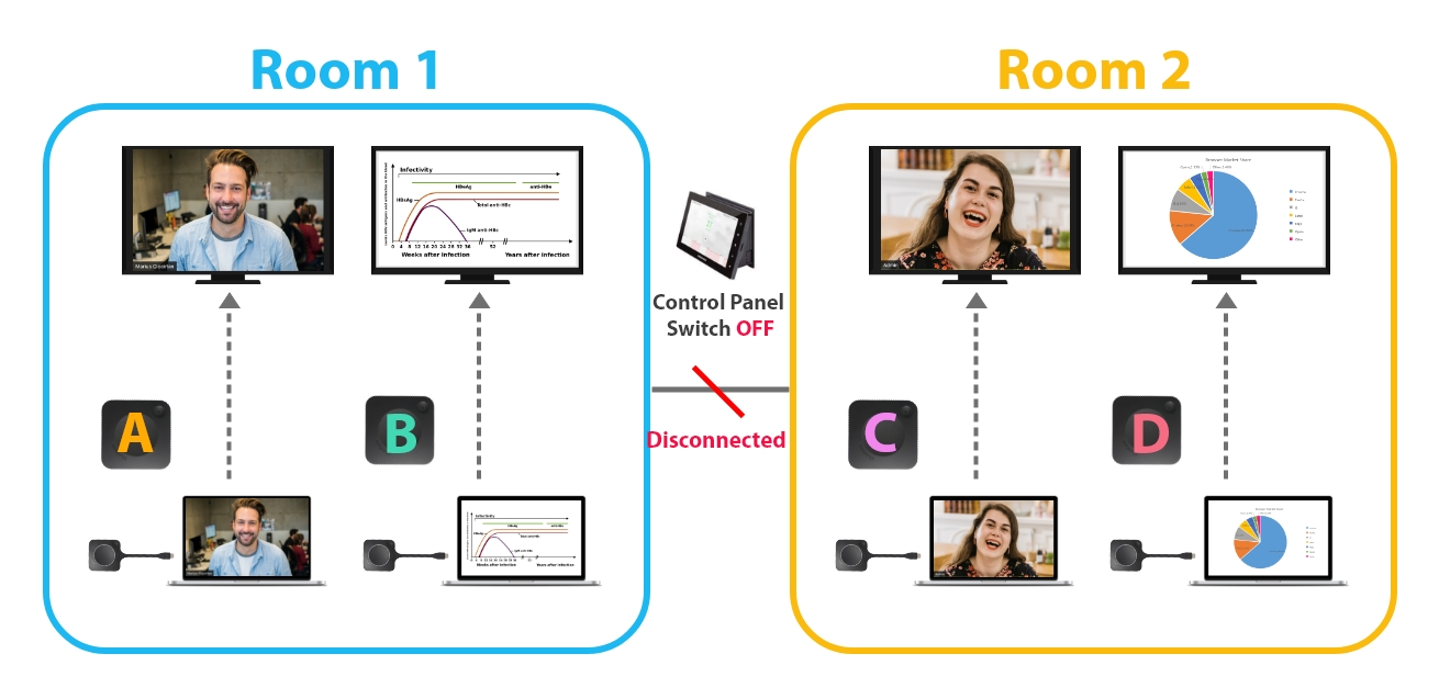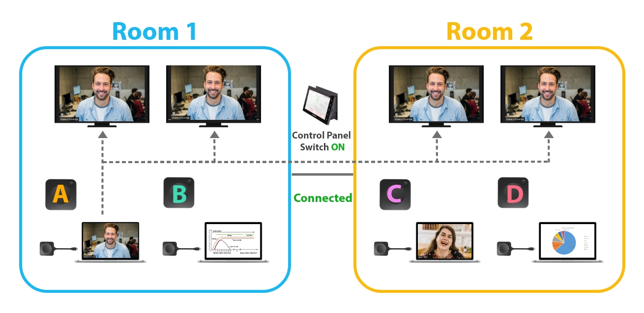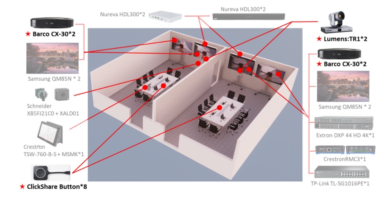 每个Barco CX-30 可以在两个房间之间共享屏幕。