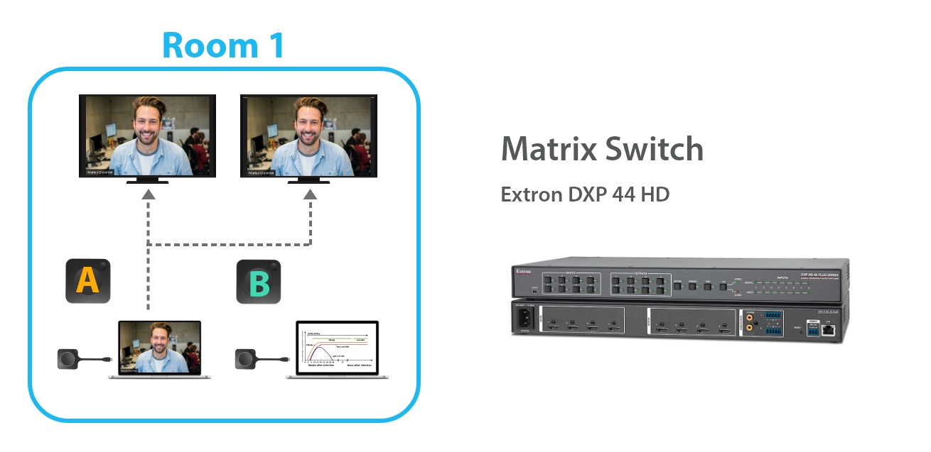 - 通常,会议室中只有一根HDMI电缆,想要使用投影屏幕的客人可能需要随时更改位置。
