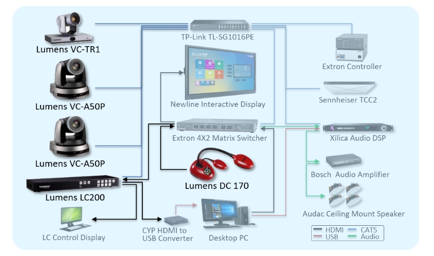 Lumens 产品之所以受到优先考虑,是因为它们提供了教室所需的所有主要视频组件。 此外,对于系统整合商来说,与第三方AV设备(如天花板麦克风和控制处理器)的整合非常简单。 我们特别喜欢Lumens VC-TR1,因为它是用于演示者追踪的独立摄像机,使手动干预可以忽略不计。