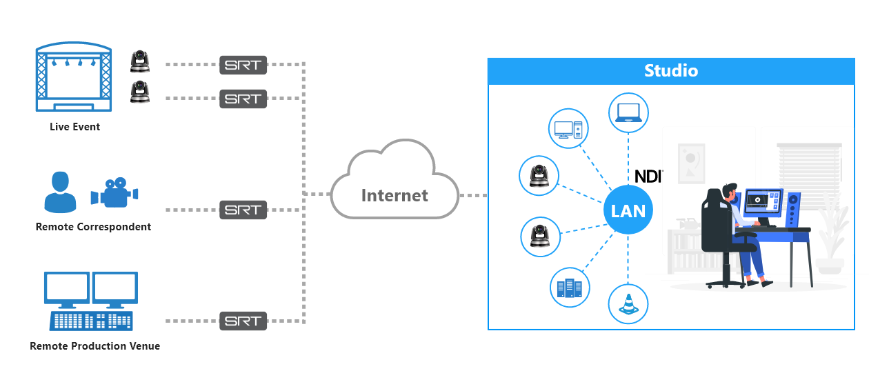 NDI®(网络设备接口)是NewTek开发的一种IP视频技术。 它是一种传输协议,用于简化通过Ethernet传输视频内容。 NDI 专为通过局域网 (LAN) 进行现场制作而设计。 NDI 的核心原则是「网络上的所有 NDI 目标都可以访问所有 NDI 源。