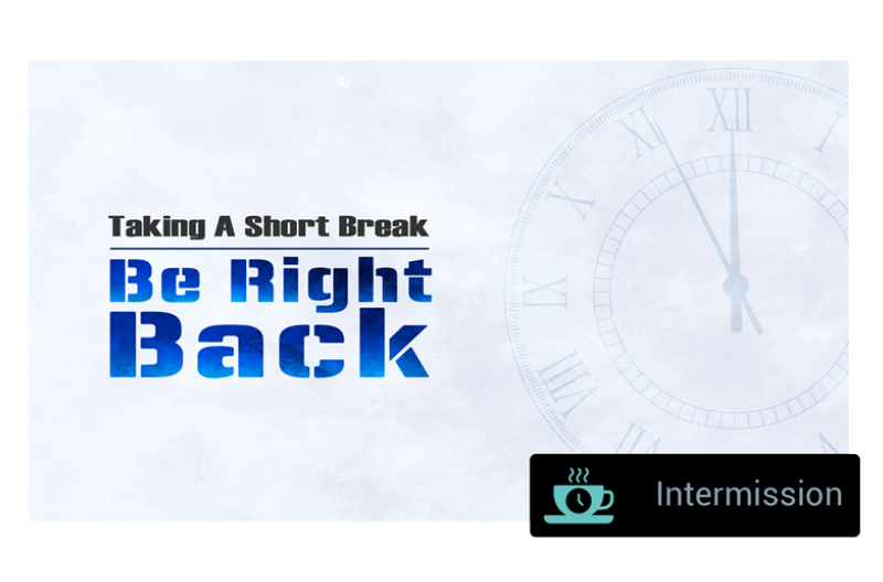 暂停录制很简单,但暂停直播是不可能的。 使用中场休息功能,可以显示中场休息图形,让观看者明确知道“现在是中场休时间”或“会议在 11:00 继续”或任何您想要分享的消息。