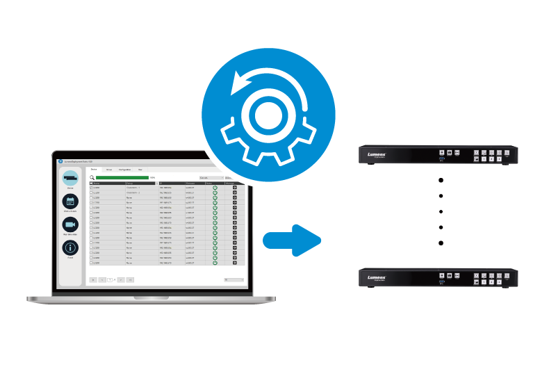 Lumens Deployment Tool 非常适合具有多个 CaptureVision 系统的组织。 现在,授权用户可以登录每台设备以触发或安排录制和串流直播,并设置摄像机和场景布局。