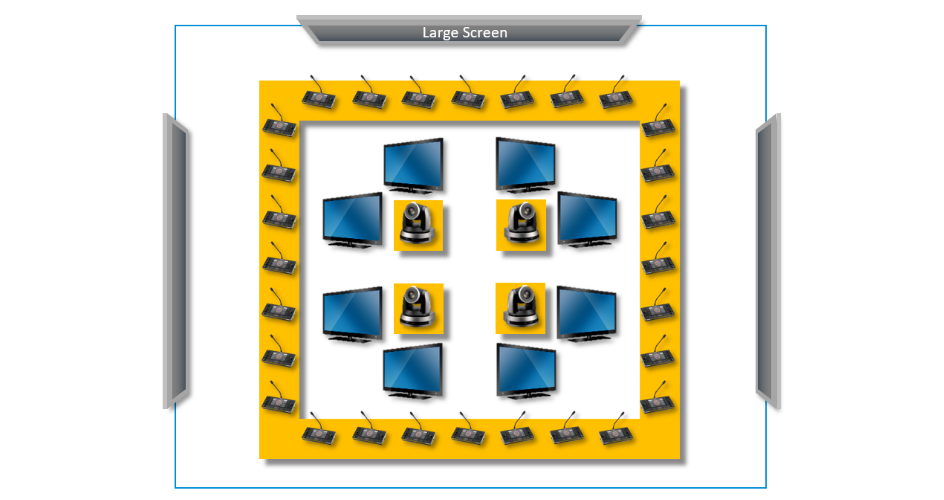 国际峰会、股东大会、高级别会议、公司会议和政治集会在最先进的会议设施中举行。 大型会议室需要具有高品质音频的专业会议系统。 广播级质量的摄像机通常集成在设置中,以将演讲者现场投影到大屏幕上或将现场内容流式传输到场地周围的屏幕,这可以进一步增强演讲者与观众互动的能力。 投票系统和同步多语言翻译在国际活动和互动活动中很常见。 Bosch DICENTIS 产品与 Lumens 摄像机完美结合,提供解决方案的各个方面。