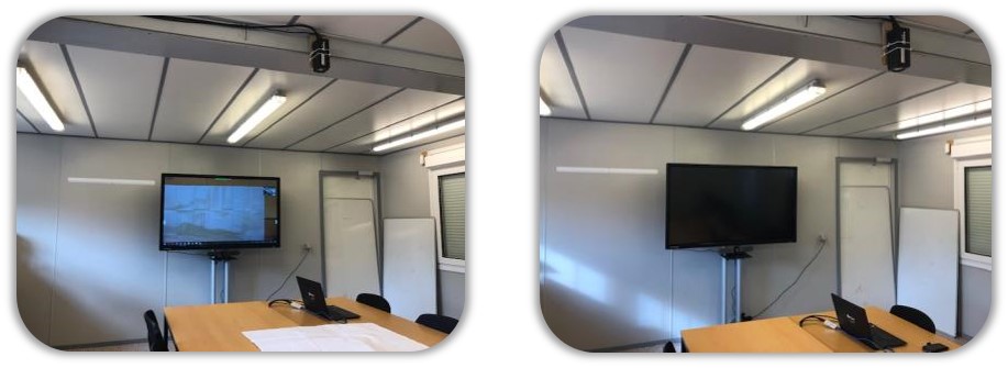 • VC-BC601P 安装在天花板上,用作全景摄像机。 双方都可以通过Zoom看到整个蓝图。 他们还使用交互式平板在蓝图上添加注释。