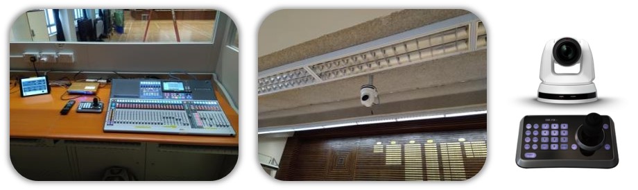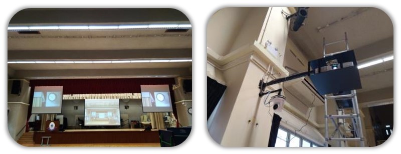 • 在学校礼堂安装了三台PTZ 摄像机VC-A70H,以捕捉现场表演。 摄像机连接到切换台,影像由投影仪显示。