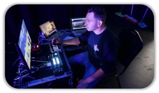 • 制片人使用VS-K20操纵杆控制器来控制PTZ摄像机,并使用紧凑型罗兰V-1SDI视频切换台来发号施令