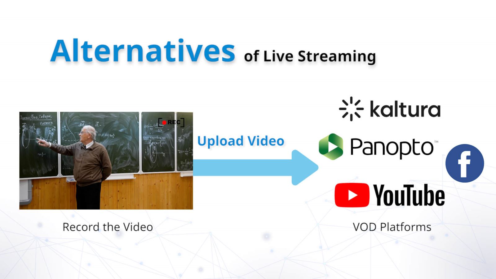 不用担心! 您可以录制视频并使其完美。 然后将其上传到Panopto,Kaltura,YouTube和Facebook等视频点播平台。 观众可以随时随地观看。 他们可以在闲暇时暂停,倒带和复习。