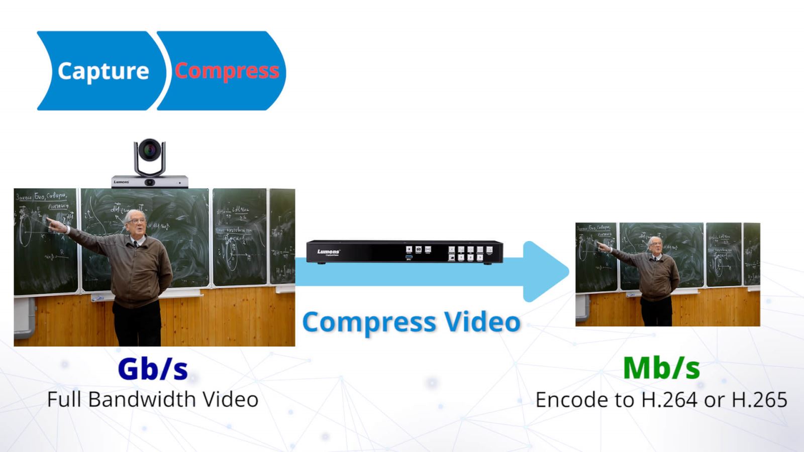 使用专用的录播系统,来自摄像机的视频被压缩成可管理的大小。 通过采用H.264等标准,文件大小很小,但影像质量很高。 选择较新的H.265再次将数据速率减半,如果您要流式传输到支持该格式的网络,这将非常棒。 但是,H264和H265都非常有效,这意味着您的视频在流式传输给观众时更有可能没有卡顿或故障,无论观看者是在本地网络上还是通过Internet观看。 虽然计算机可用于压缩视频,但用户经常发现专用的硬件处理器更易于管理,通常更可靠并且更易于使用。