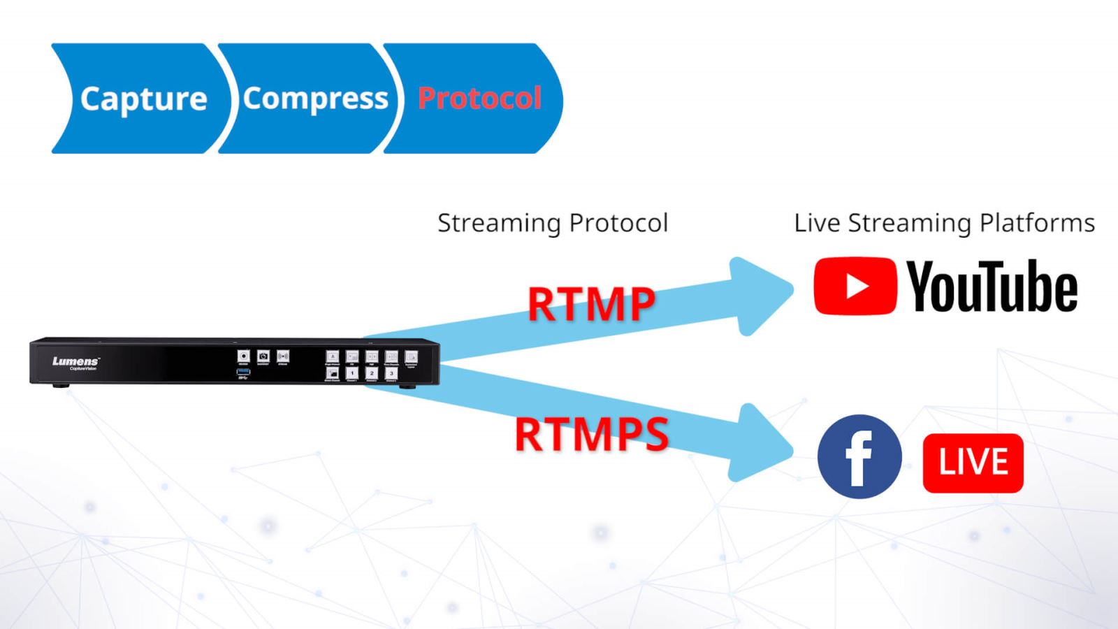 视频被压缩后,接下来被打包成一个流媒体协议,如RTMP、RTMPS、SRT或WebRTC,这样视频就可以通过互联网传输到直播平台。