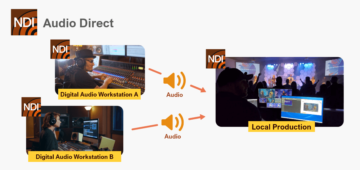 NDI Audio Direct 打破了硬件有线调音台的限制,让您能够选择使用基于软件的音频解决方案。 NDI Audio Direct 将几乎任何音频软件应用程序带入NDI工作流程,而不会出现任何同步问题。 NDI允许用户仅接收音频流,而不是整个NDI视频流。 它将为您的生产工作流程带来极大的灵活性和创造力。