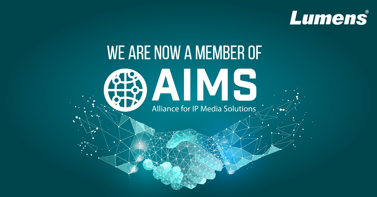2022年6月2日 – Lumens® 为专业电视广播等级摄影机、媒体处理器和 AV over IP 设备制造商,现已加入AIMS媒体解决方案联盟 (Alliance for IP Media Solutions),与全球知名Pro AV的专业影音制造商如:SONY、Panasonic、Canon、Yamaha、Bosch、Barco等,共同推动IPMX — IP影音传输技术全球标准化 (IP Media Experiences)。