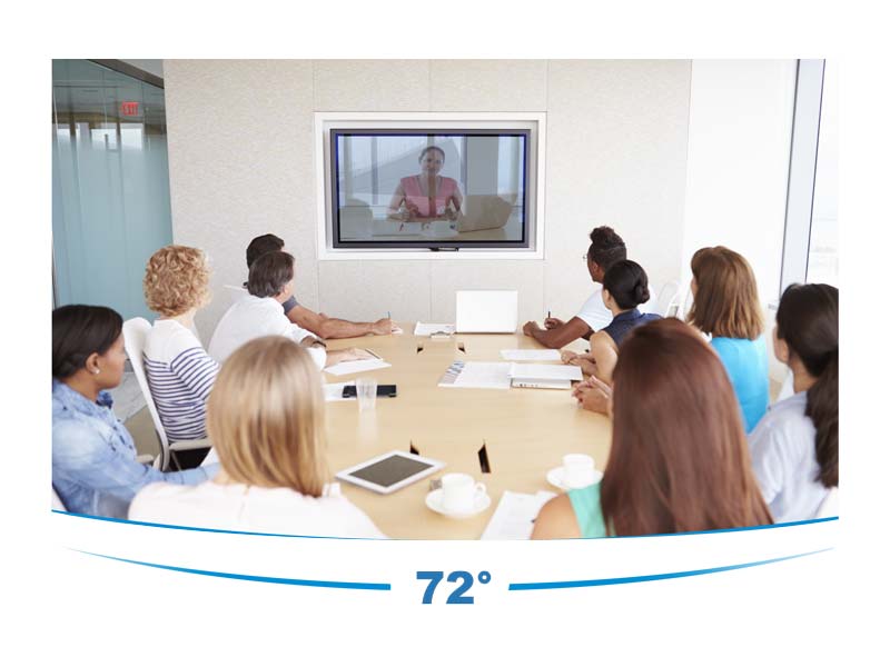 拥有72°(H) 80°(D)的超大视角,使会议成像无死角并满足各类视频会议场所的需求